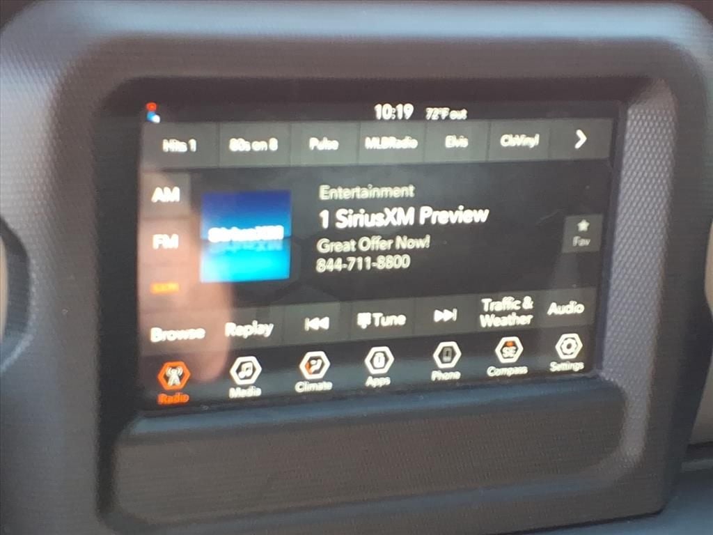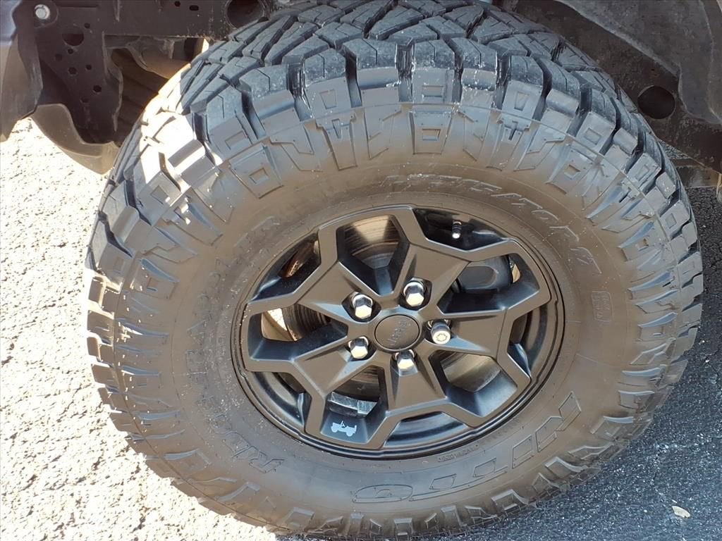 Convenience Group: Remote Start System; Universal Garage Door Opener. Quick Order Package 26W Willys: Speed Sensitive Power Locks; Protection Sill Rails; Leather Wrapped Steering Wheel; 4-Wheel Drive Decal; Black Grille; MOPAR All-Weather Slush Mats; 2-Piece Body Color Fender Flares; Front 1-Touch Down Power Windows; Anti-Spin Differential Rear Axle; Front Heavy Duty Red Accent Shock Absorbers; Security Alarm; Willys; Mold in Color Bumper with Gloss Black; Automatic Headlamps; 17" X 7.5" Black Aluminum Wheels with Gray Pad; Deep Tint Sunscreen Windows; Willys Hood Decal; Rear Heavy Duty Red Accent Shock Absorbers; 97 MPH Vehicle Max Speed Calibration; Power Heated Mirrors; Daytime Running Lamp System; Power Tailgate Lock; Bridgestone Brand Tires; Remote Keyless Entry; Sun Visors with Illuminated Vanity Mirrors. Trailer Tow Package: Heavy Duty Engine Cooling; Trailer Hitch Zoom; Class IV Receiver Hitch; 240 Amp Alternator. Quick Order Package 23W Willys. Black 3-Piece Hard Top. MOPAR Spray in Bedliner. Firecracker Red Clearcoat. Corning Gorilla Glass. SiriusXM Satellite Radio. **Equipment listed is based on original vehicle build and subject to change. Please confirm the accuracy of the included equipment by calling the dealer prior to purchase.**
