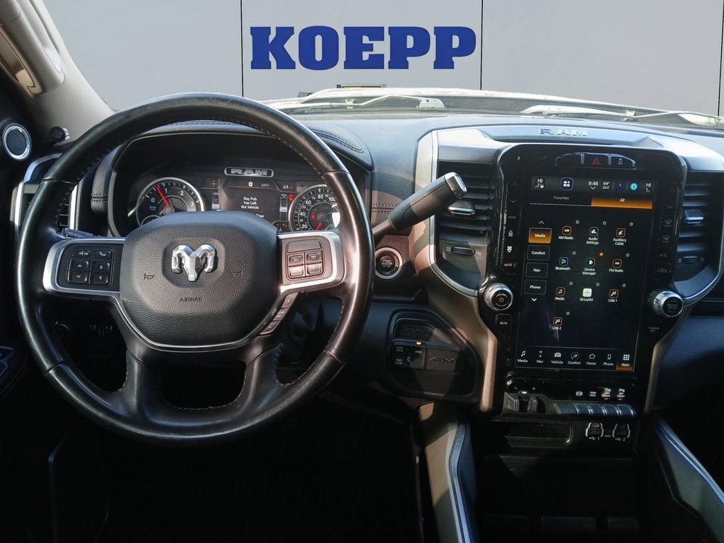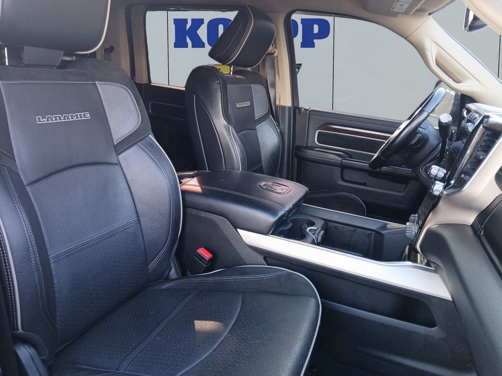 Quick Order Package 21H Laramie. Laramie Level B Equipment Group: SiriusXM Satellite Radio; Mirror-Mounted Aux Reverse Lamps; Rain Sensitive Windshield Wipers; Power Adjustable Pedals with Memory; Power Chrome Tow Mirrors with Convex Spotter and Memory; Ventilated Front Seats; Remote Tailgate Release; 17 Speaker Harman Kardon Premium Sound; Auto High Beam Headlamp Control; Chrome Exterior Mirrors; Exterior Mirrors with Memory; Heated Second Row Seats; Foam Bottle Insert (door Trim Panel); 2nd Row in Floor Storage Bins; Radio/driver Seat/mirrors/pedals Memory; Power Adjustable Convex Aux Mirrors. Body Color Bumper Group: Painted Front Bumper; Painted Rear Bumper. Dual Rear Wheels: Clearance Lamps; LT235/80R17E BSW AS Tires; 17" Steel Spare Wheel; Box and Rear Fender Clearance Lamps; Center Hub; 6000# Front Axle with Hub Extension; 17" X 6.0" Polished Aluminum Wheels; 14. 000 lbs GVWR. Protection Group: Transfer Case Skid Plate Shield. Uconnect 5 Navigation with 12.0" Display Radio. Power Deployable Running Boards. Leather Trimmed Bucket Seats. 5th Wheel/gooseneck Towing Prep Group. Center Stop Lamp with Cargo View Camera. 50 Gallon Fuel Tank. MOPAR Front and Rear Rubber Floor Mats. Clearance Lamps. **Equipment listed is based on original vehicle build and subject to change. Please confirm the accuracy of the included equipment by calling the dealer prior to purchase.**